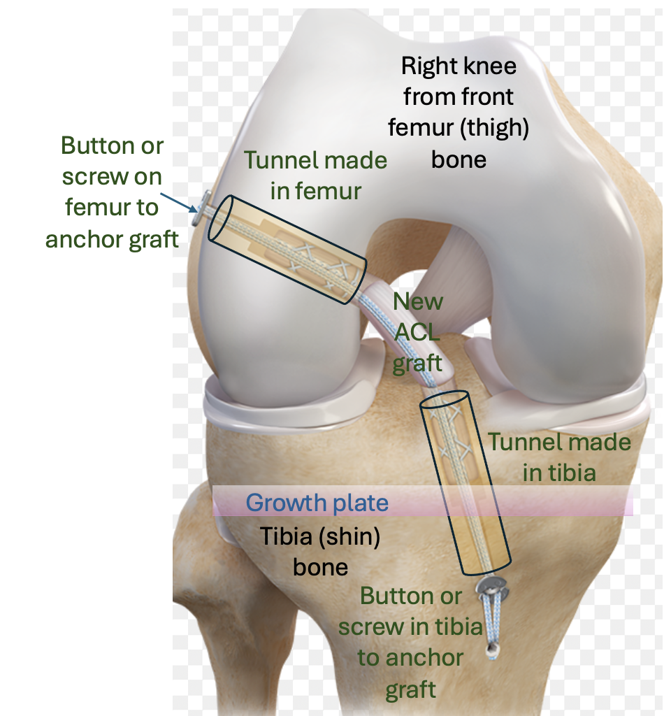 Traditional adult ACL reconstruction techniques risk physeal injury if not modified.